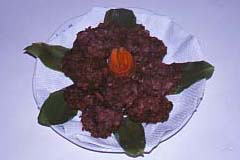 半日くらいおいてから食べると味が良くでます。 また,玉ねぎを塩でもむと辛みがとれます。 レモンを加えるといっそうおいしくなります。 |