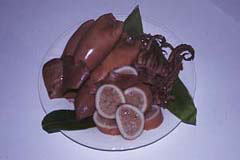 | 材料 | イカ………………………2匹 タコの足…………………1本 大根…………………中位半分 ニンジン………………小1本 酢…………………………少々 砂糖………………………少々 塩…………………………少々 酒…………………………少々 |