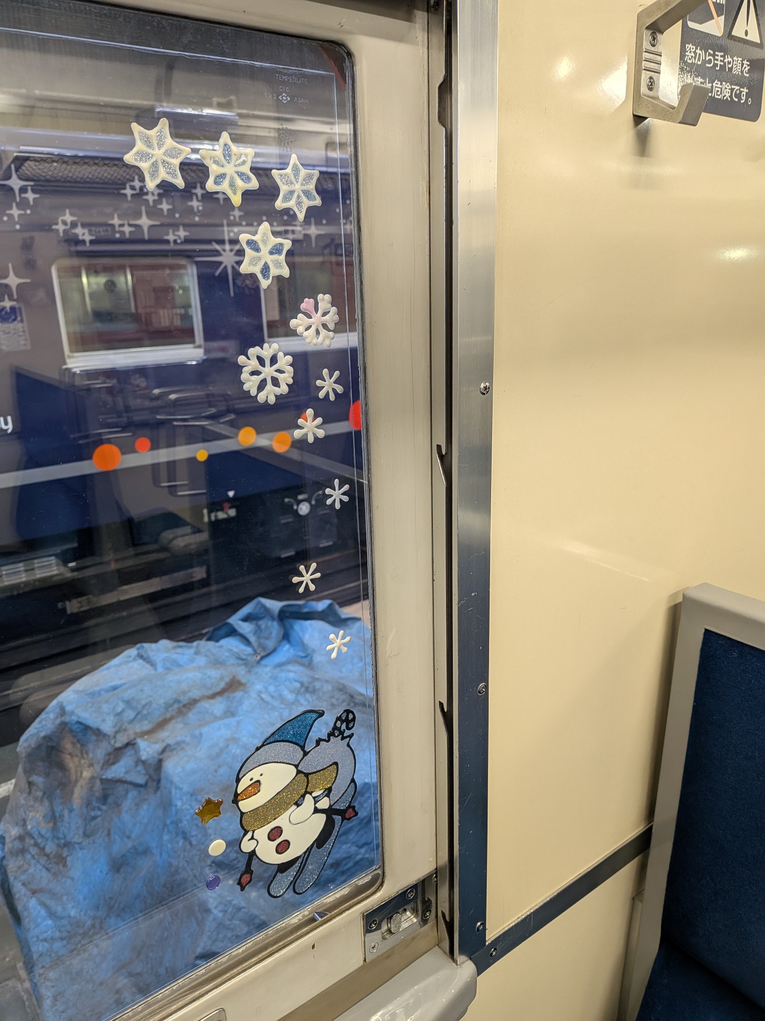 • 飾りつけを施した2両の車両のうち1両は、上磯・木古内間で車内の灯りを落として運転する、夜景列車として運行されました。