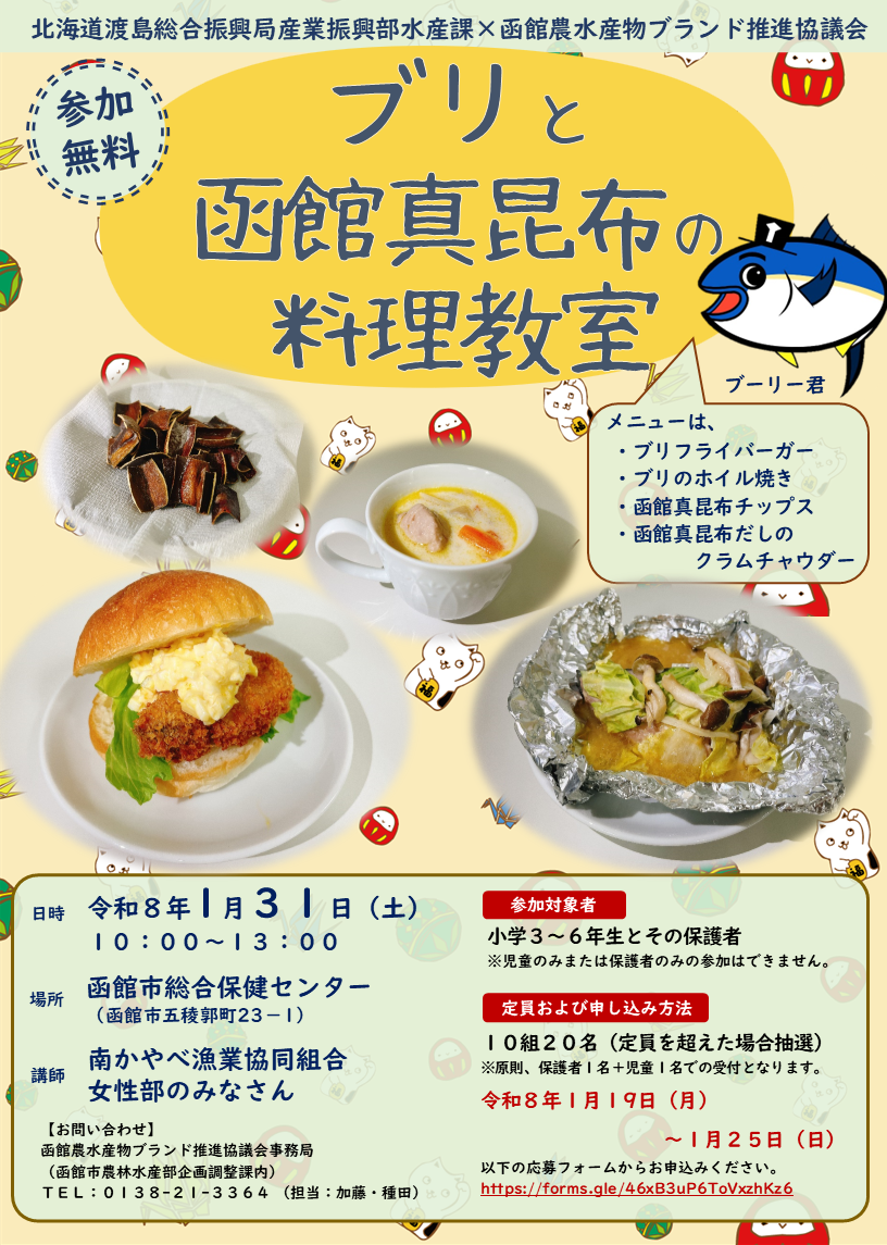 参加無料!ブリと函館真昆布を使った料理教室を開催します!